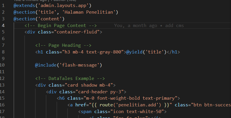 Kemudian tambahkan code berikut kedalam view ditempat kalian akan munculkan flash message nya