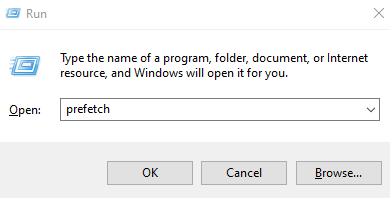 Klik **Start Win + R** lalu ketik **`prefetch`**